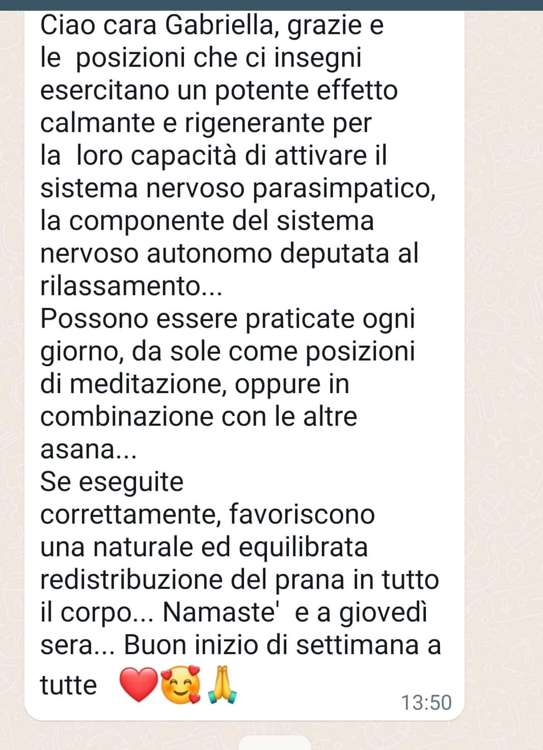 Dal 2010 pratica yoga e meditazione, avvicinandosi a vari stili tra cui Hatha, vinyasa, ashtanga, kundalini yoga.